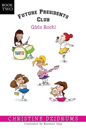 In the second Future Presidents Club book, Charlotte takes center stage. When the ballerina learns that her dance recital may be canceled, she convinces her friends to mount a talent show to help her musical friends. Can the Future Presidents Club’s new singing group, The Rainbow Tutus, help save their school’s band program?
